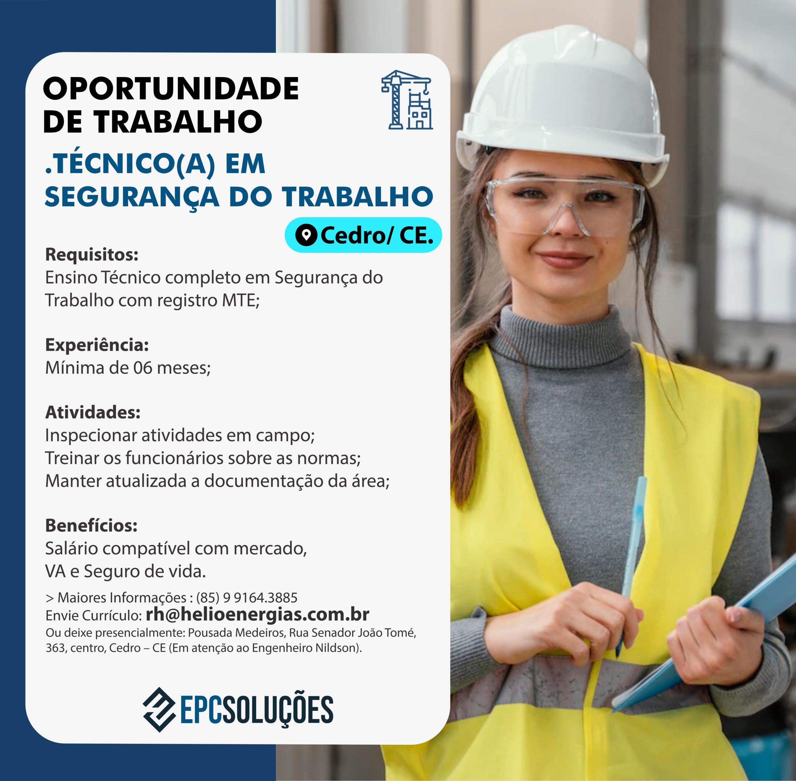 Vaga para Técnico em Segurança do Trabalho – Cedro (CE)