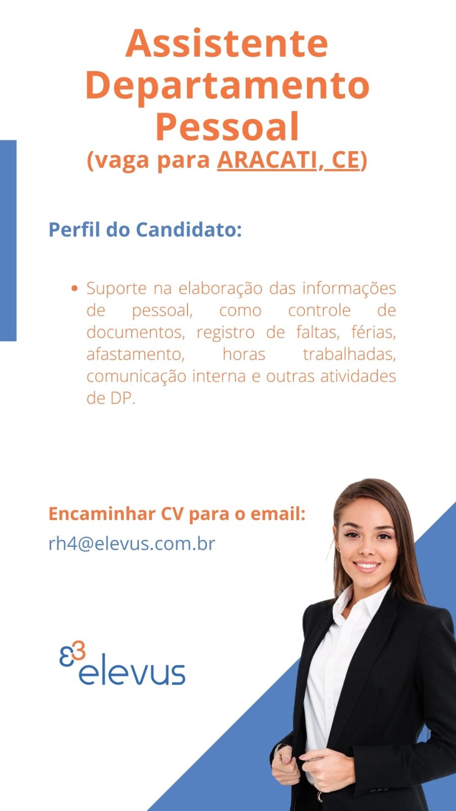 Vaga para Assistente de Departamento Pessoal