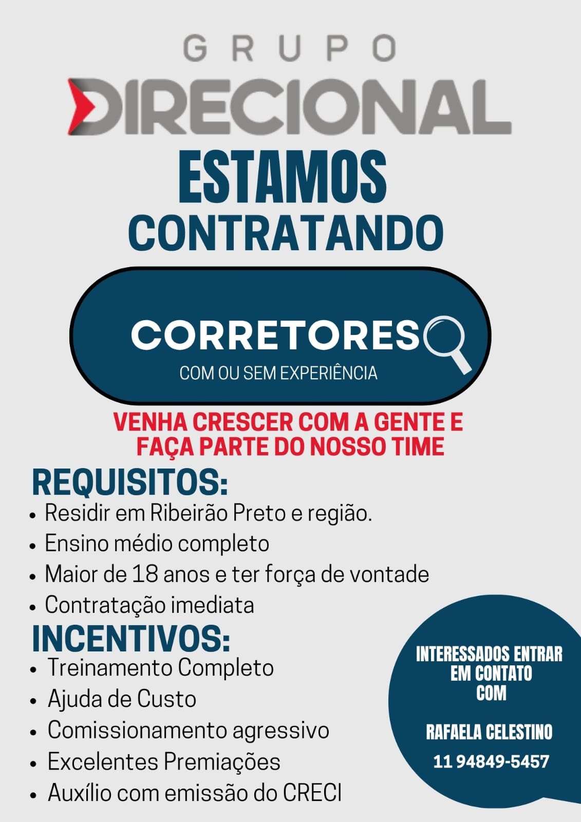 ‼️ VAGA | ESPECIALISTA EM IMÓVEIS | CONSULTOR DE VENDAS | RIBEIRÃO PRETO – SP.